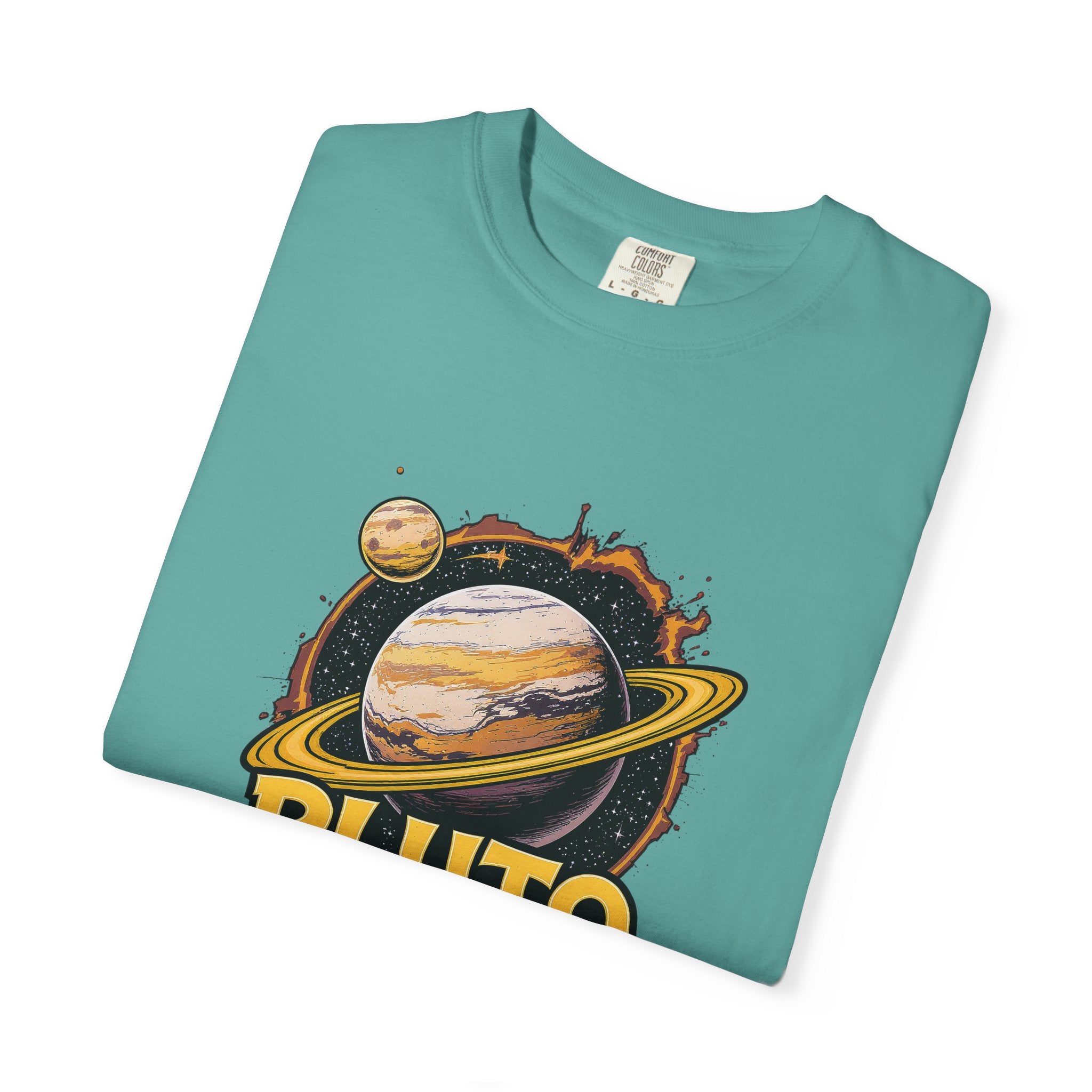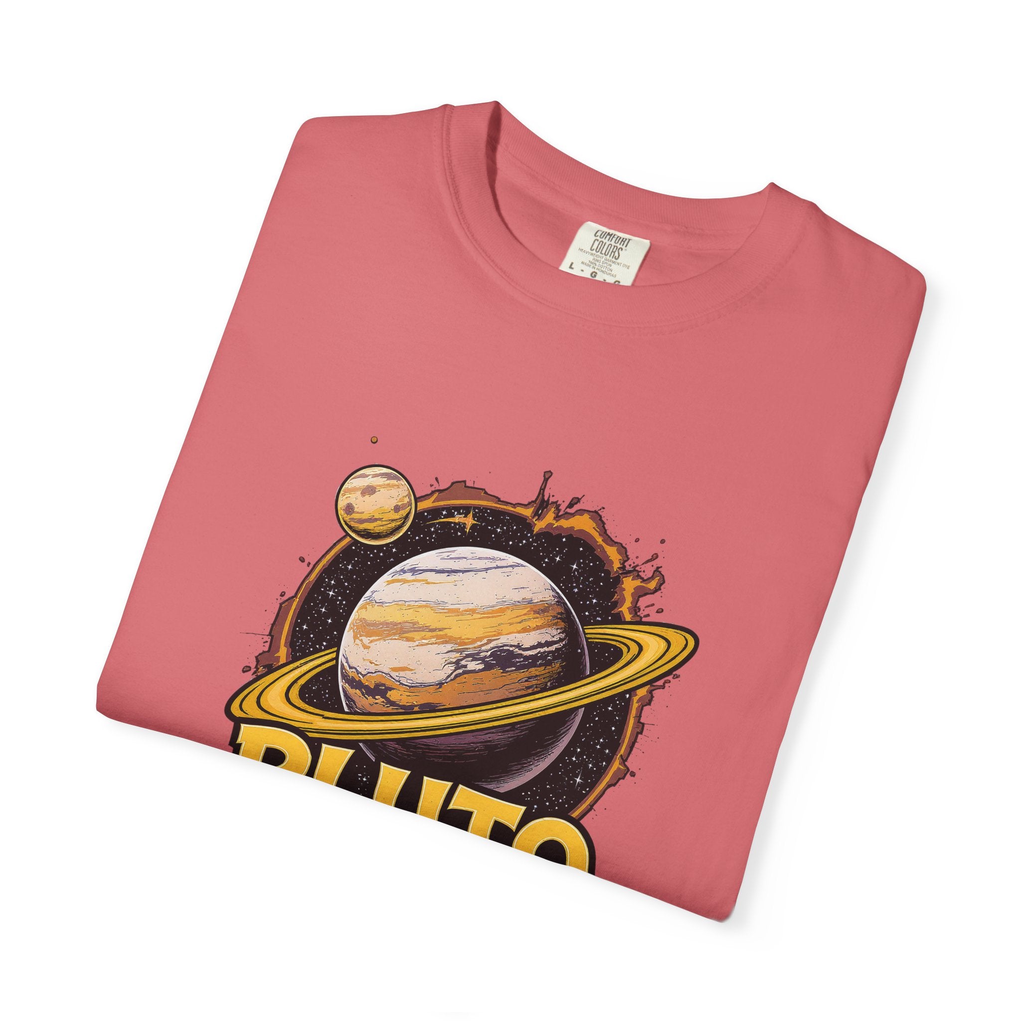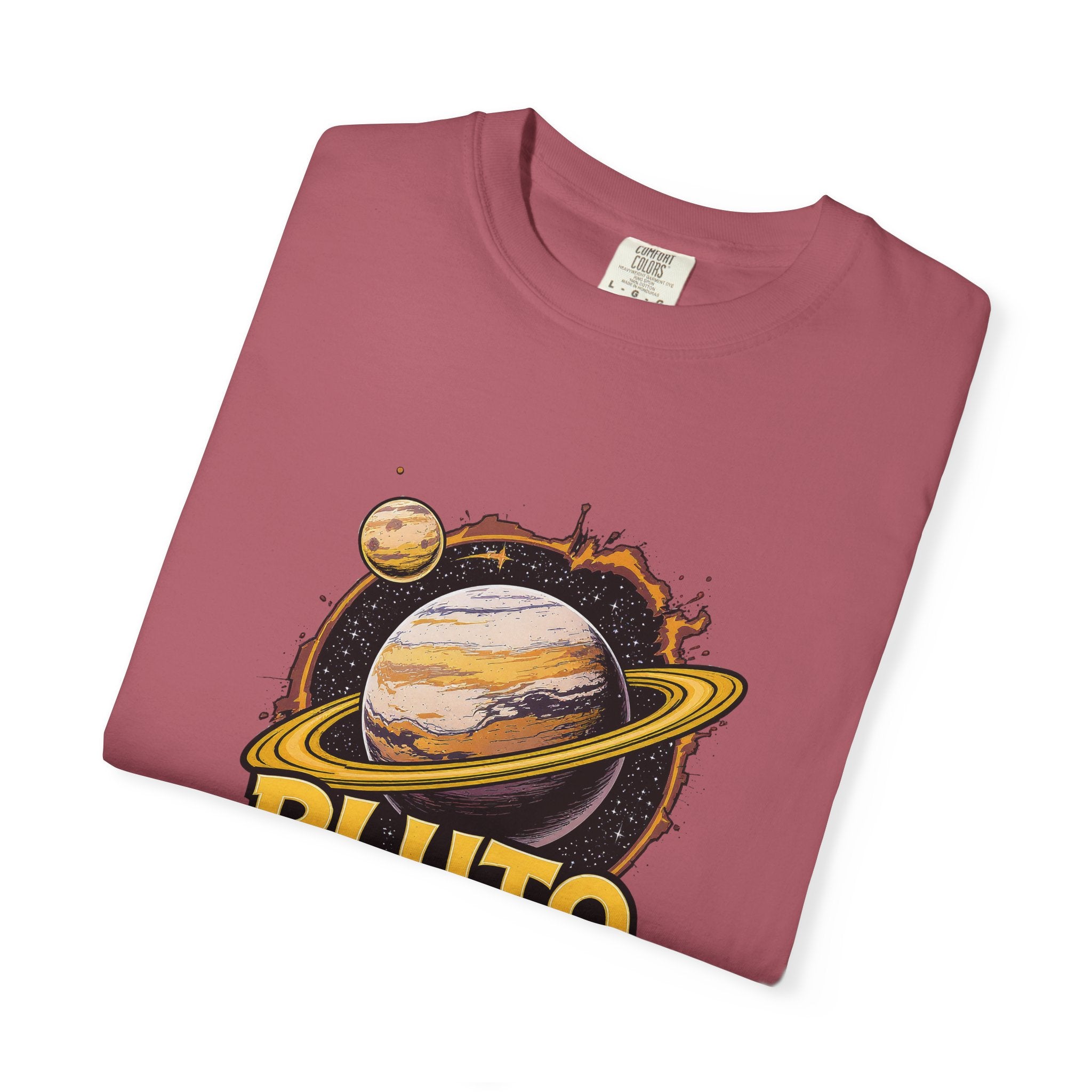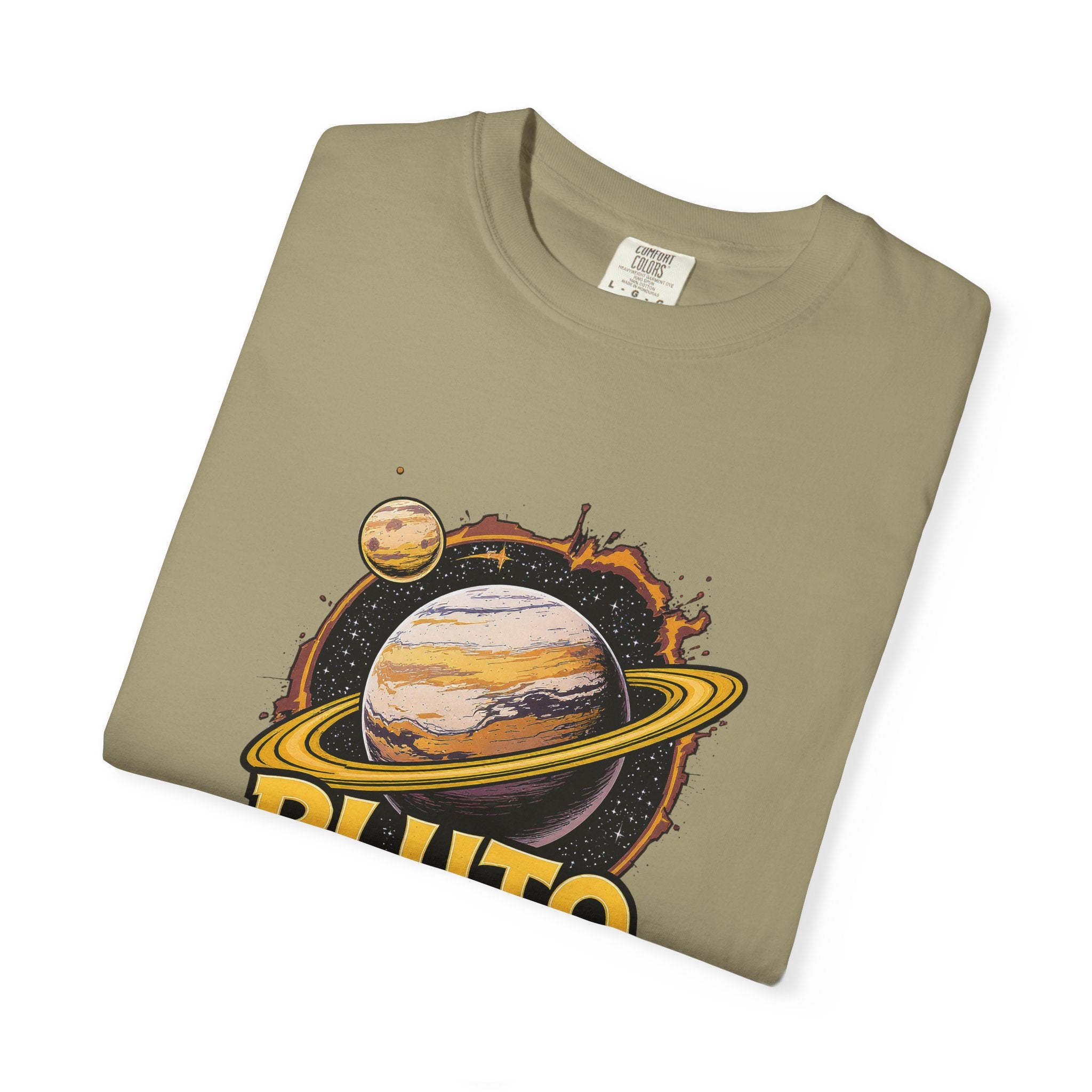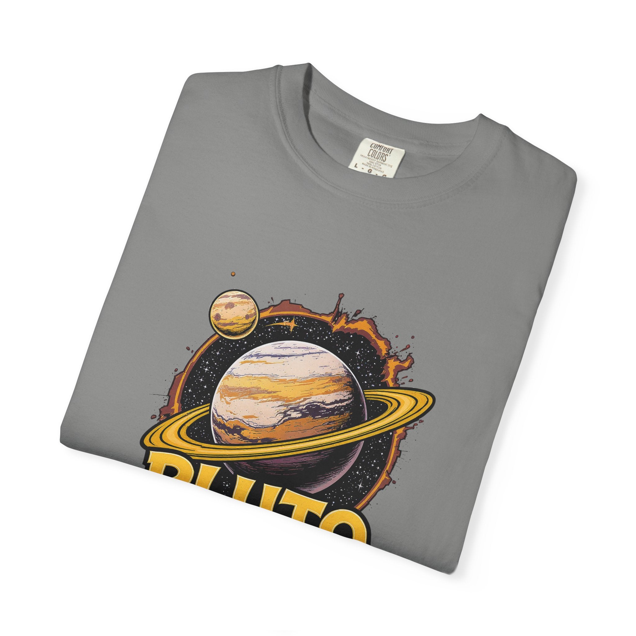 Embrace comfort and style with this 'Pluto, Never Forget!' Cart dyed t-shirt. Crafted from 100% ring-spun US cotton, it offers...