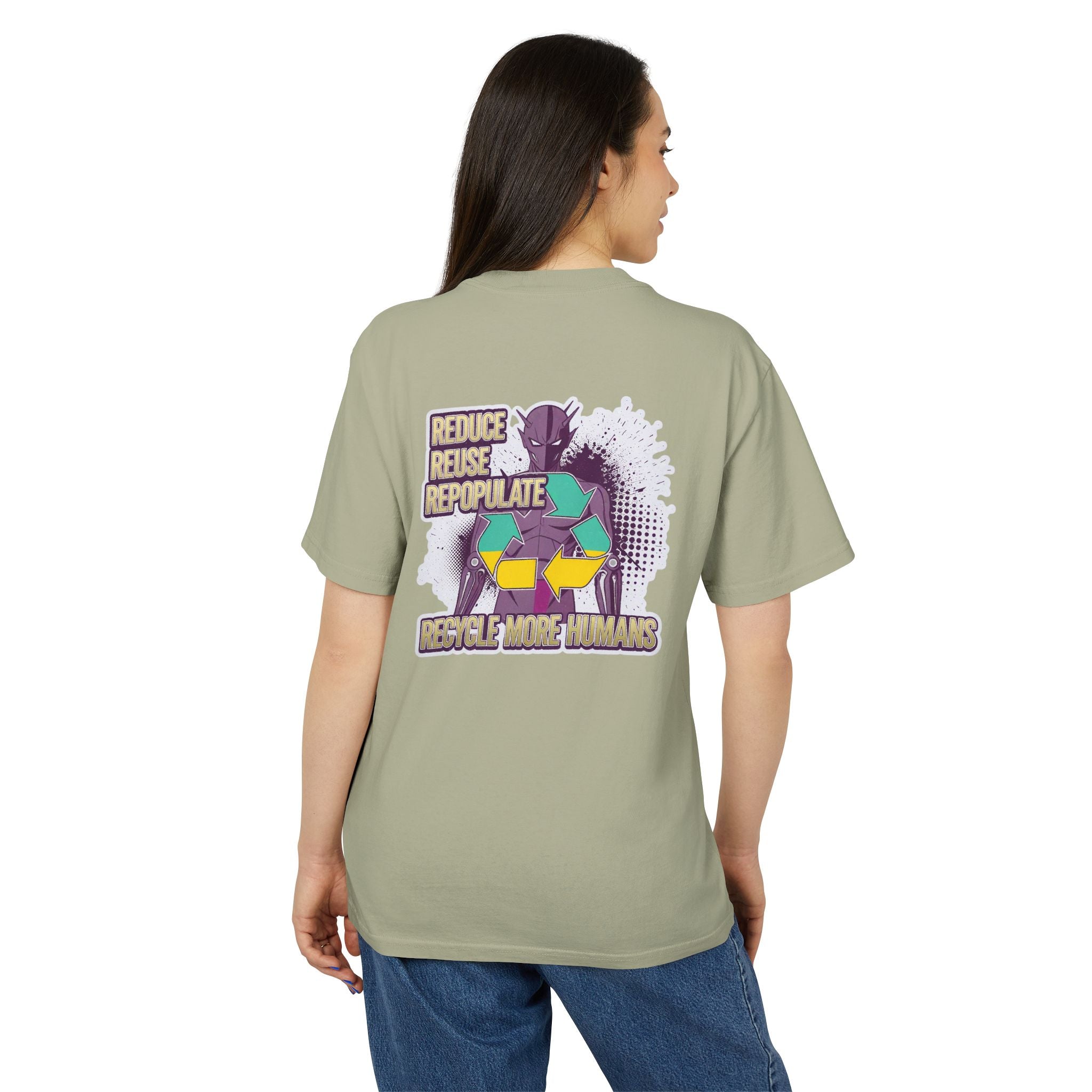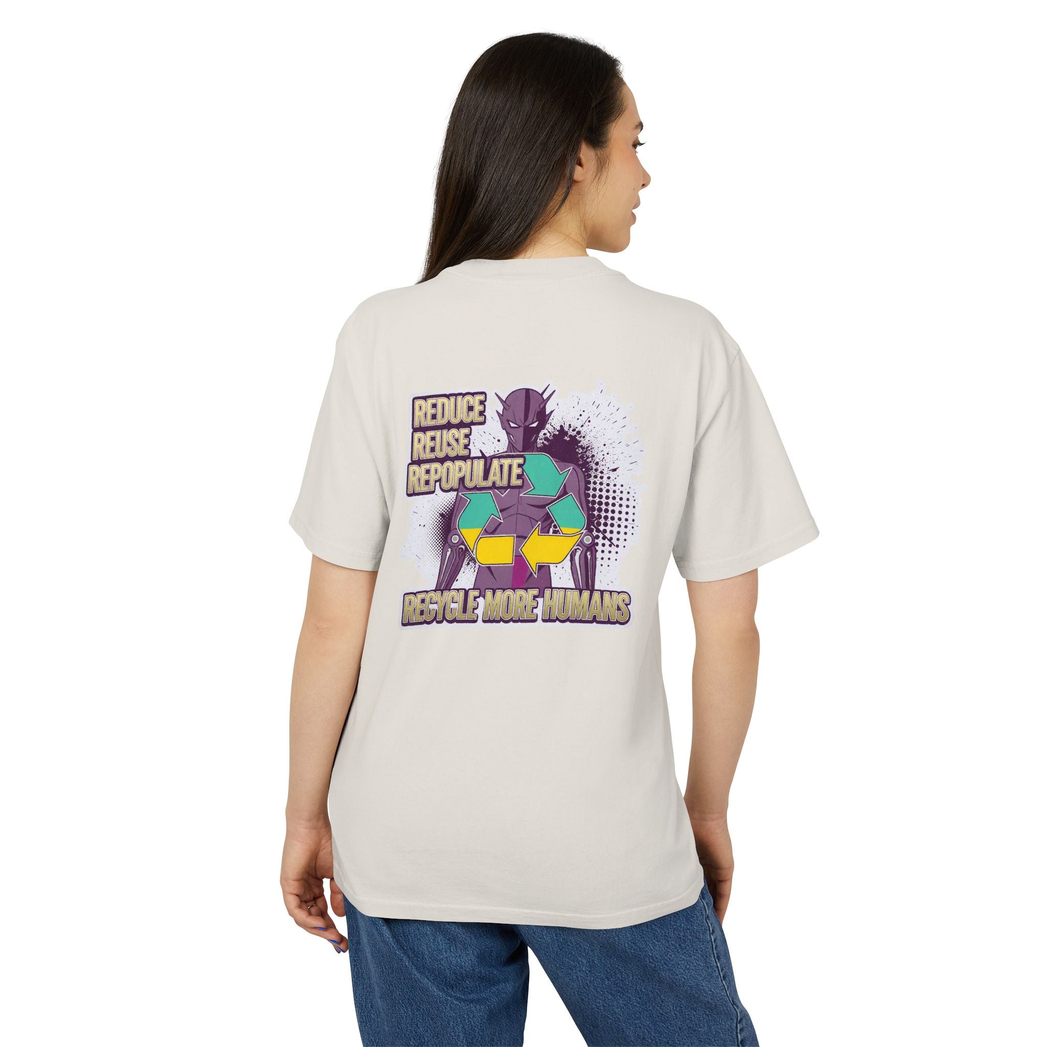 The 'Recycle More Humans' v1 T-Shirt, Eco-Friendly Graphic Tee, Save the Earth Apparel, Sustainable Clothing, Upcycled Materials Shirt